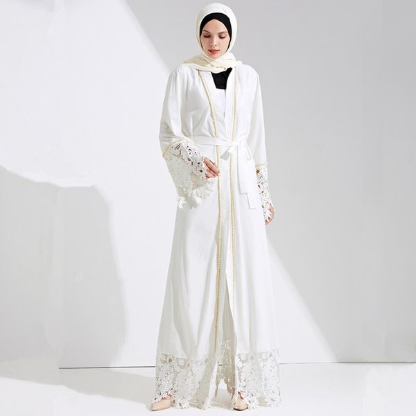 Women Muslim Abaya Dubai Black White Lace Pears Beaded Bangladesh Robe Cardigan Hijab Caftan Turkish Islamic Clothing Headscarf