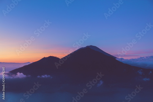 Early Sunrise View Gunung Batur Volcano Bali Indonesia Visible