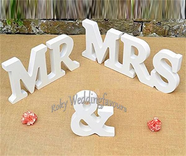 White Wooden Mr Mrs Letters Wedding Decoration Supplies Engagement Party Table Setting Ideas Flower Birthday Party Supplies Flower Themed Birthday