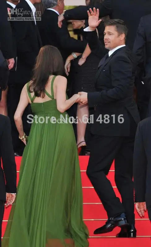 Inspired By Angelina Jolie Simple Celebrity Dresses Oliver Green Spaghetti Straps Pleat Pregnant Evening Formal Gowns From Wedding Store